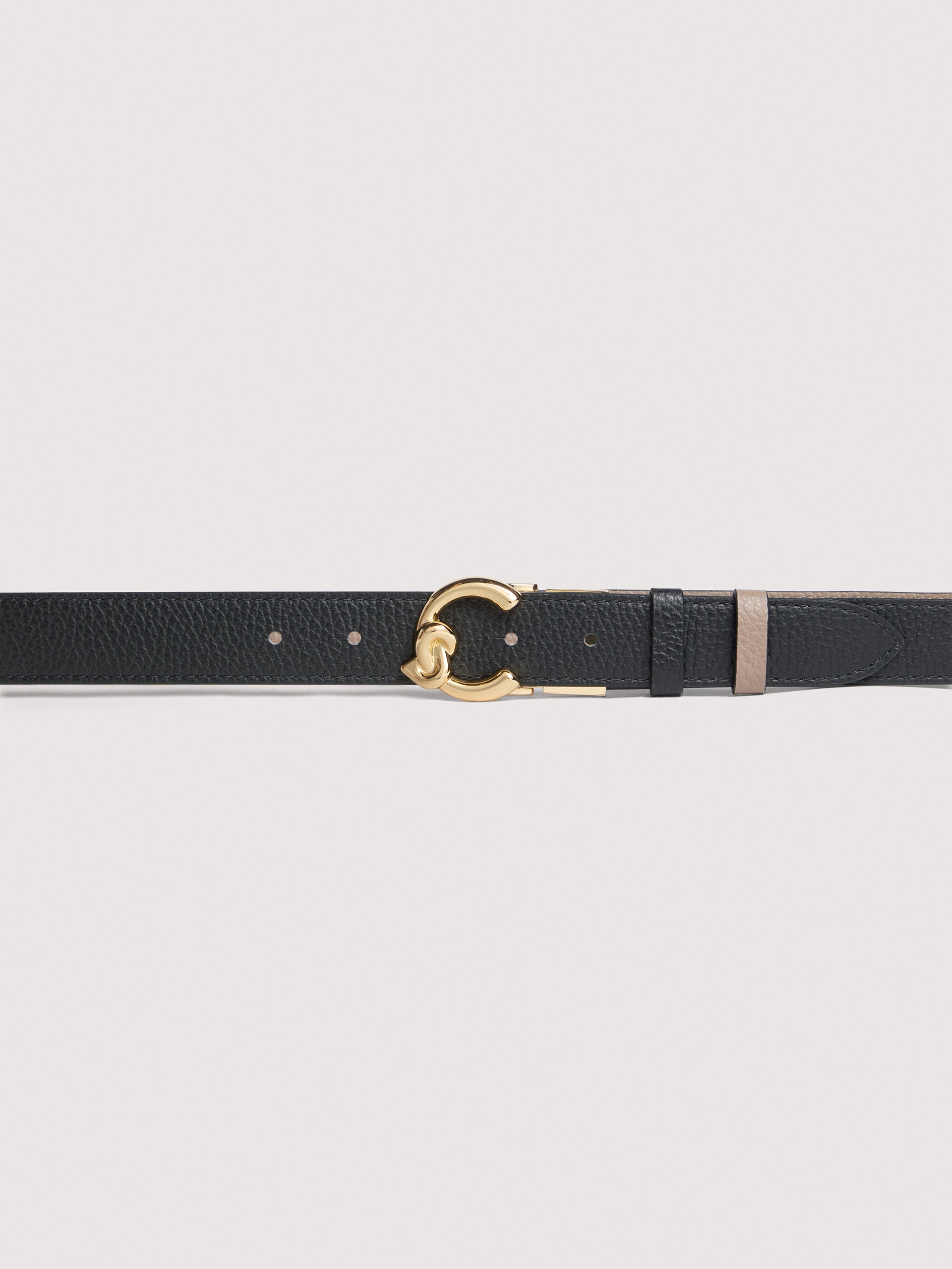 This belt from the C-Me line is enhanced by the logo reimagined with the C of Coccinelle, which knots around and embraces the plectrum, an iconic element of the brand. Its standout feature is the reversible two-tone strap, perfect for complementing any outfit. This model is made with leather processed using specialised machines and then tumbled to maintain its softness. This is a very robust, easy to clean leather, making it ideal for everyday use.