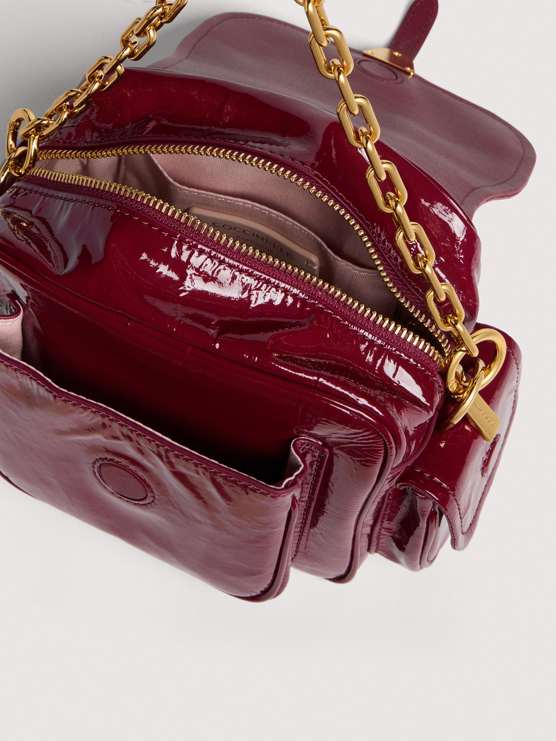 Coccinelle Campus skilfully combines Coccinelle identity details with the style of classic college briefcases. This results in a cool and attractive spirit, complete with metallic details in the iconic plectrum shape. A perfect minibag that features a cosmopolitan style and a multi-pocket design, creating extra storage space for personal items thanks to the flap and internal zip fastening. The chain handle combined with the leather shoulder strap complete the design, so it can be carried in the hand or across the body. This model is made from leather processed using specialist machinery that applies a thin layer of varnish. The leather is then tumbled to break the surface and create a wrinkle effect.