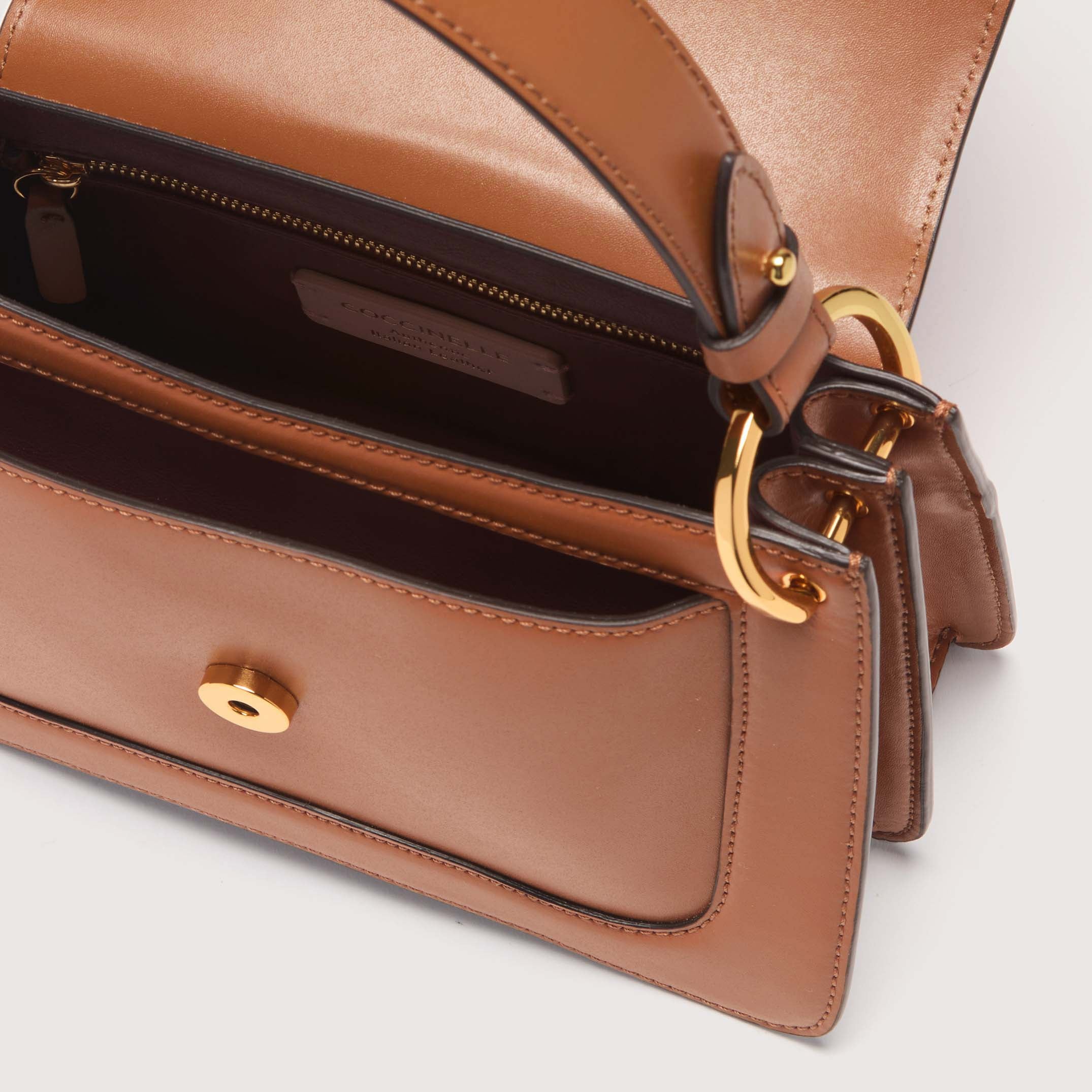 A new signature joins the brand: Coccinelle C-Me. The logo is reimagined with the C from Coccinelle, which knots around and embraces the plectrum - an iconic element of the brand - symbolising the intertwining of a woman’s life between past and present. The geometric lines and elegant curves elevate the design, while the gusseted construction brings a blend of functionality and understated elegance to this bag, intended to be the essential companion for the Coccinelle woman throughout her day. This model is made with smooth leather, tanned with special oils to give it a durable and refined appearance.