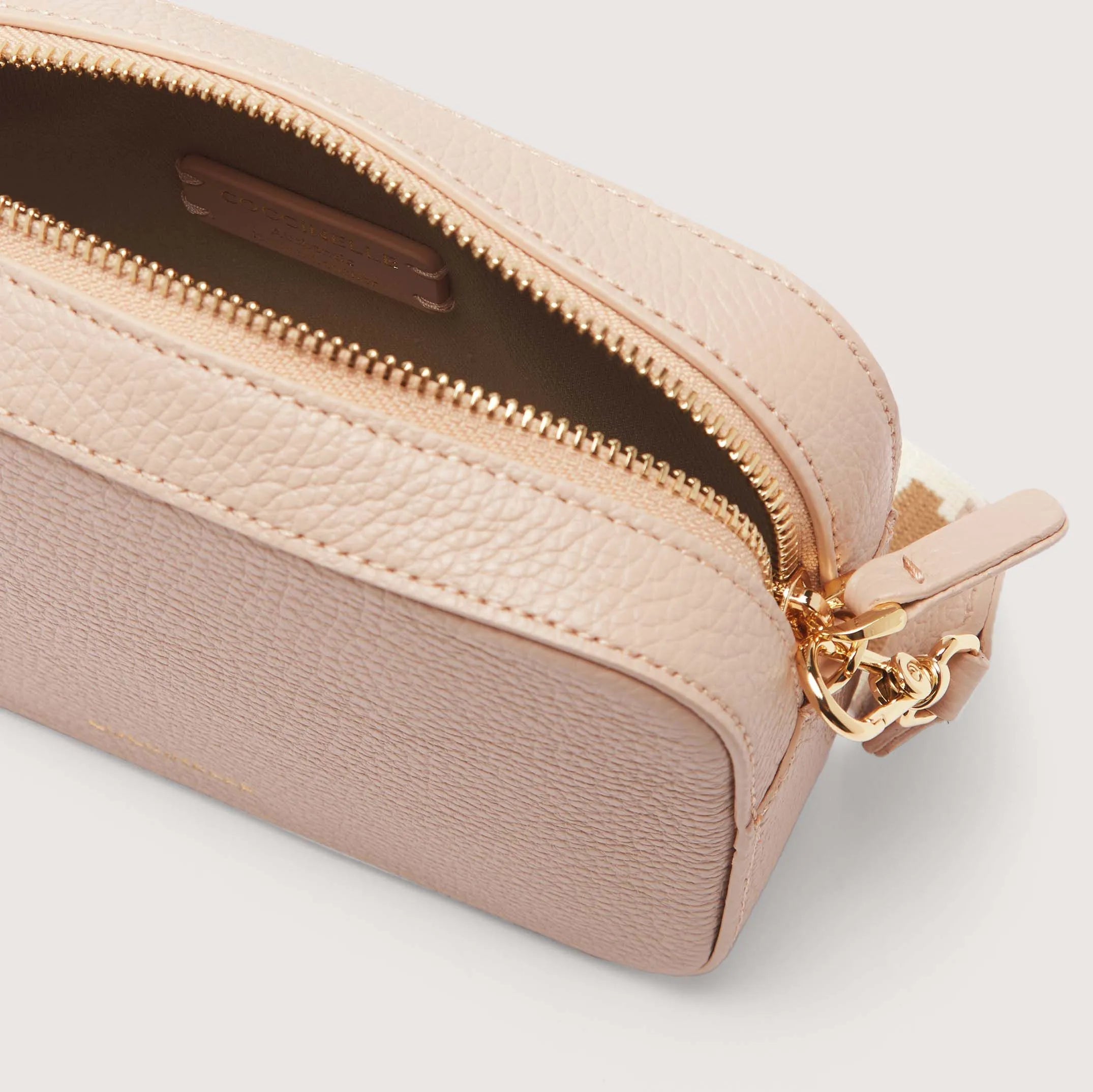 Made from leather with a refined colour palette and retro-inspired details, the Tebe camera bag lends a more casual feel to the everyday look, thanks in part to the comfortable fabric shoulder strap. This model is made with leather processed using specialised machines and then tumbled to maintain its softness. This is a very robust, easy to clean leather, making it ideal for everyday use.