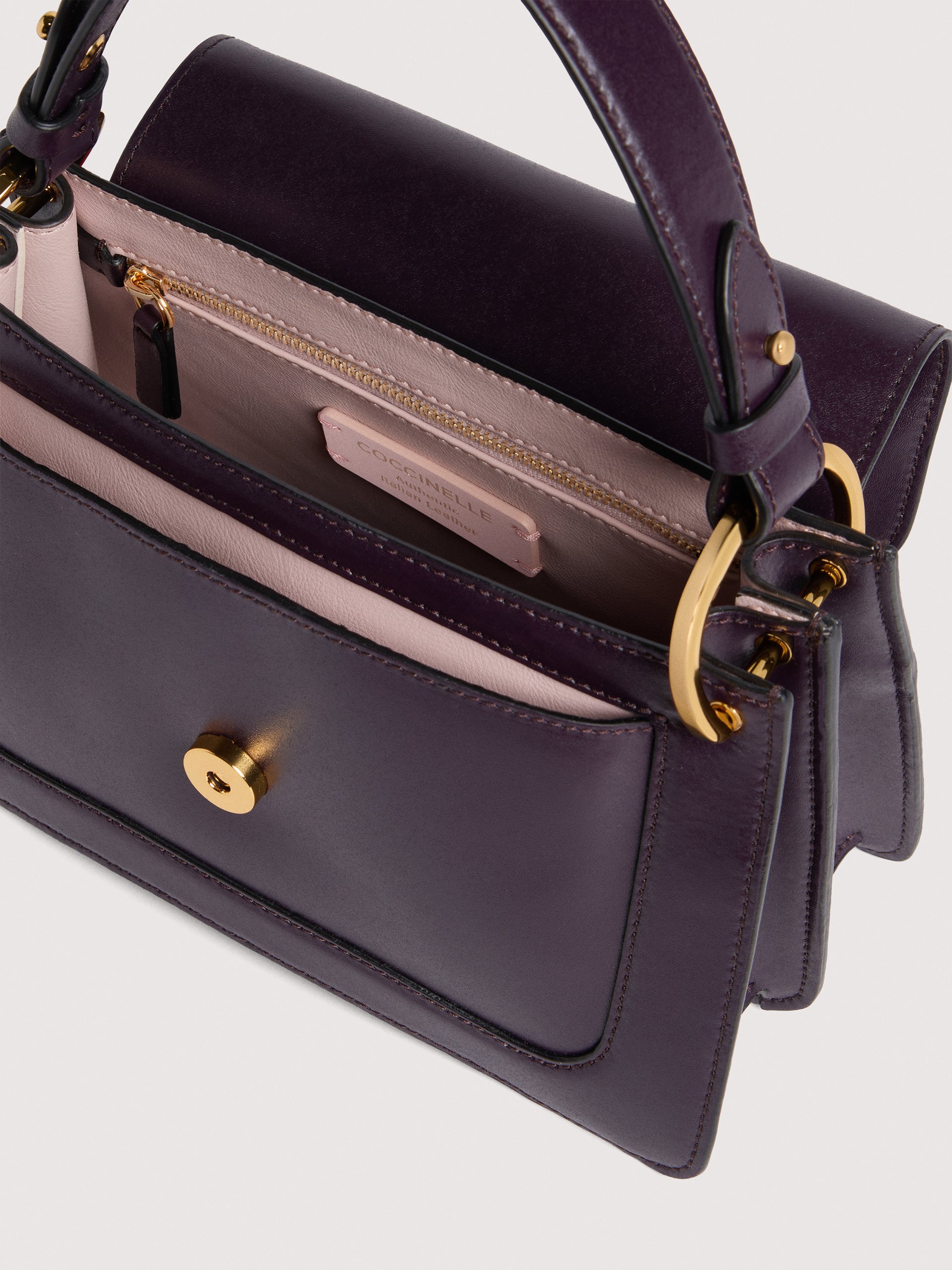 A new signature joins the brand: Coccinelle C-Me. The logo is reimagined with the C from Coccinelle, which knots around and embraces the plectrum - an iconic element of the brand - symbolising the intertwining of a woman’s life between past and present. The geometric lines and elegant curves elevate the design, while the gusseted construction brings a blend of functionality and understated elegance to this bag, intended to be the essential companion for the Coccinelle woman throughout her day. This model is made with smooth leather, tanned with special oils to give it a durable and refined appearance.