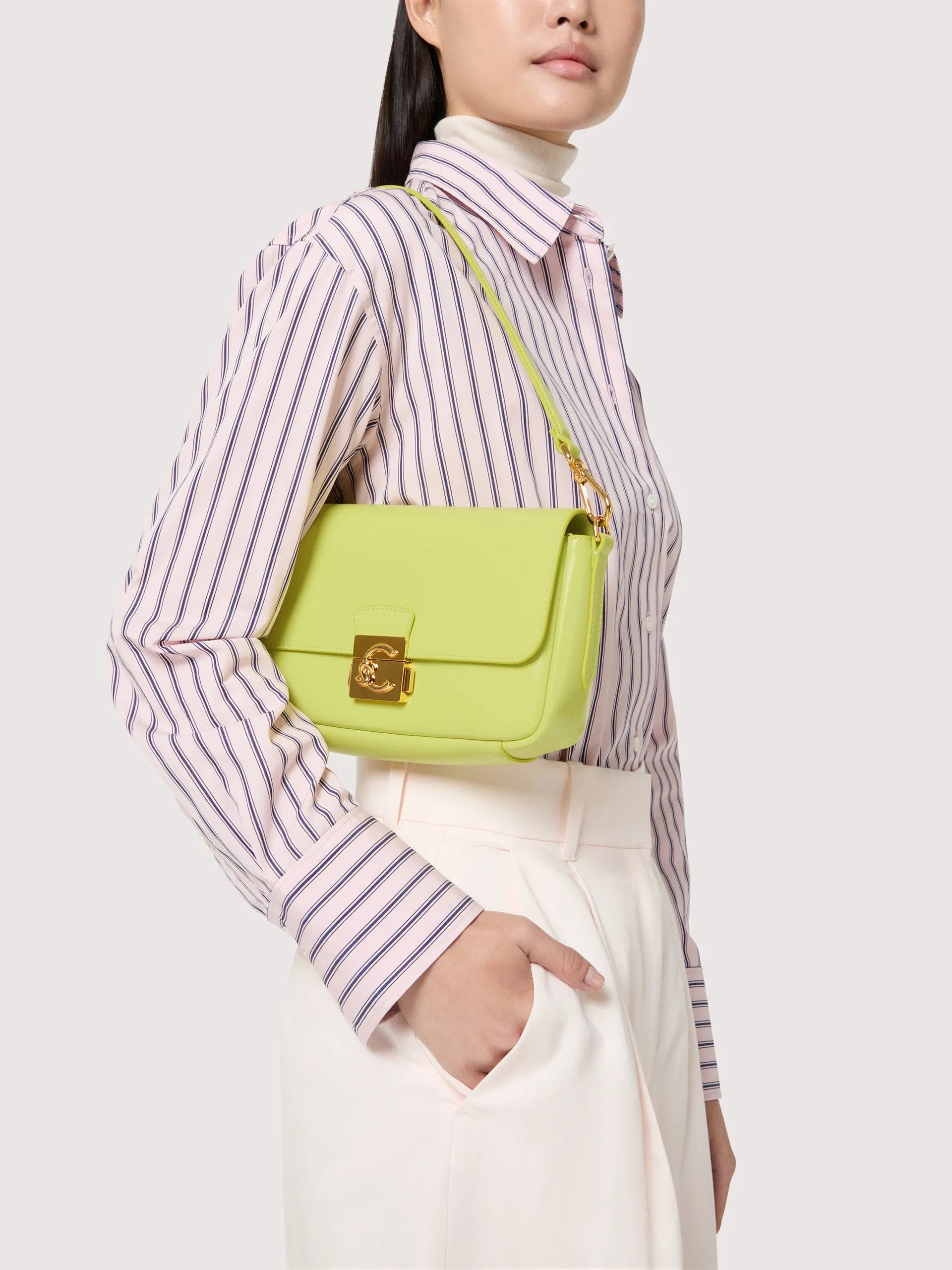 The Coccinelle C-Me Lock line is a sophisticated evolution of the C-Me logo, reimagined as a modern, distinctive closure that underscores its contemporary character. C-Me Lock stands out with a bold yet practical design, ideal for everyday life with a touch of style. This model is made from smooth, soft leather. Once the leathers have been dyed in the chosen colour, the surface is coated with a transparent finish that gives the leather a glass-like effect.