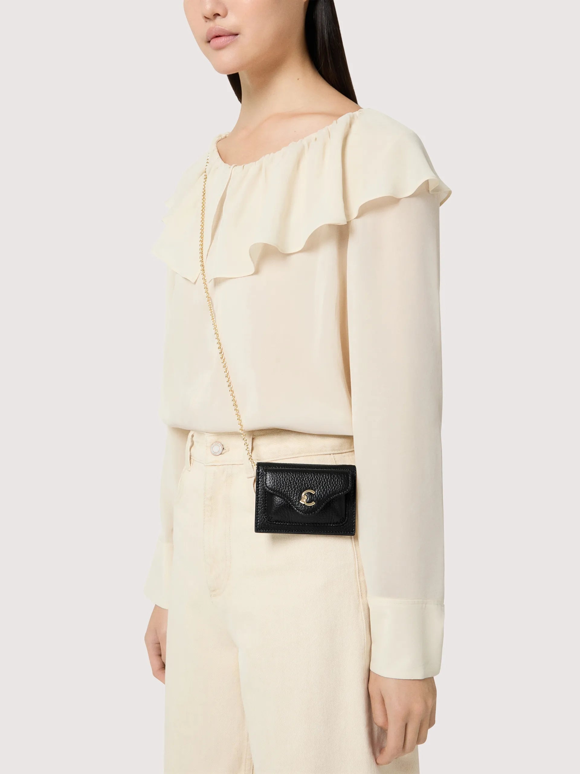 Practical and compact in design, this C-Me line card holder combines functionality with elegance. The logo is reimagined with the C of Coccinelle, knots around and embraces the plectrum, an iconic element of the brand. Finished with an elegant chain shoulder strap, this accessory is also perfect for carrying on the shoulder. This model is made with leather processed using specialised machines and then tumbled to maintain its softness. This is a very robust, easy to clean leather, making it ideal for everyday use. RFID protection.