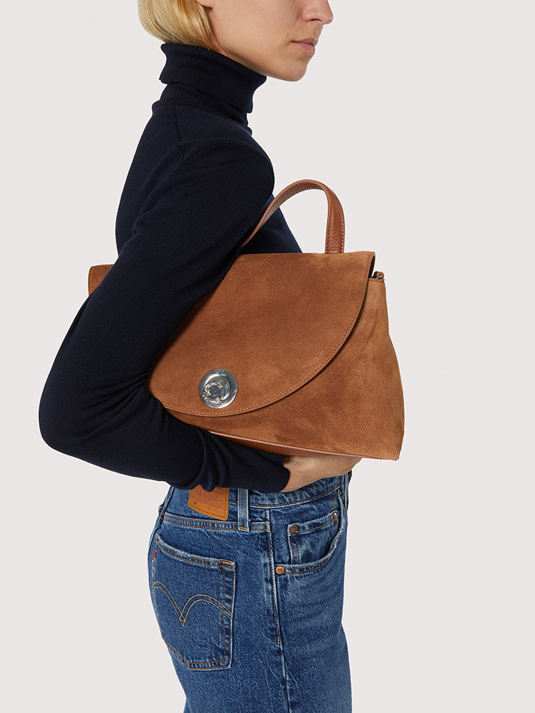 For the Coccinelle Nikla line, the C-Me logo becomes a refined turn lock that elegantly finishes off this bag with a flap. Sophisticated and modern, each design blends timeless elegance with a contemporary silhouette, accentuated by the leather’s softness. The bag features a spacious interior and a rear pocket, and is constructed from two-sided leather. This model is made of an opaque material that is soft and velvety to the touch. Our suede undergoes an anti-fading treatment that guarantees a reduction in natural colour loss. This is a delicate material. A soft brush is recommended for cleaning.